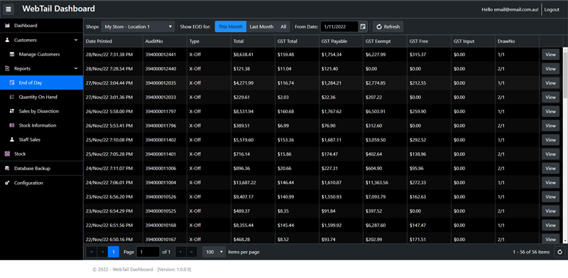 Manage and view your business EOD/XOFF reports. We provide you the ability to view these summaries across all your stores just like you would in PosBrowser except anywhere.
