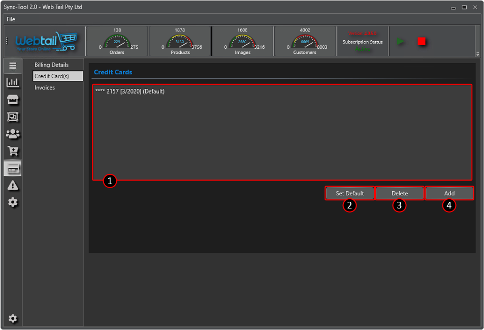 The credit card(s) tab allows you to manage your credit card details for billing purposes and change your credit card when it expires.