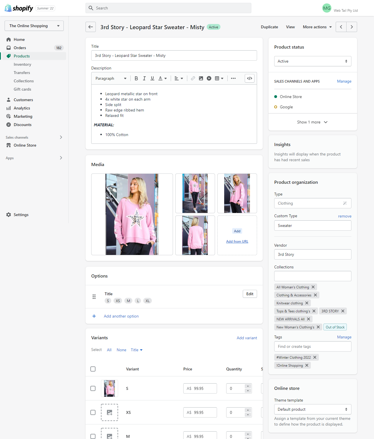 All the attributes you've configured in PosBrowser will be immediately visible in your e-commerce package. Your products will appear like any other standard online products in Shopify and you can leverage any plugins and themes that Shopify supports.
